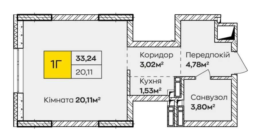 • Загальна площа 33.25 м2