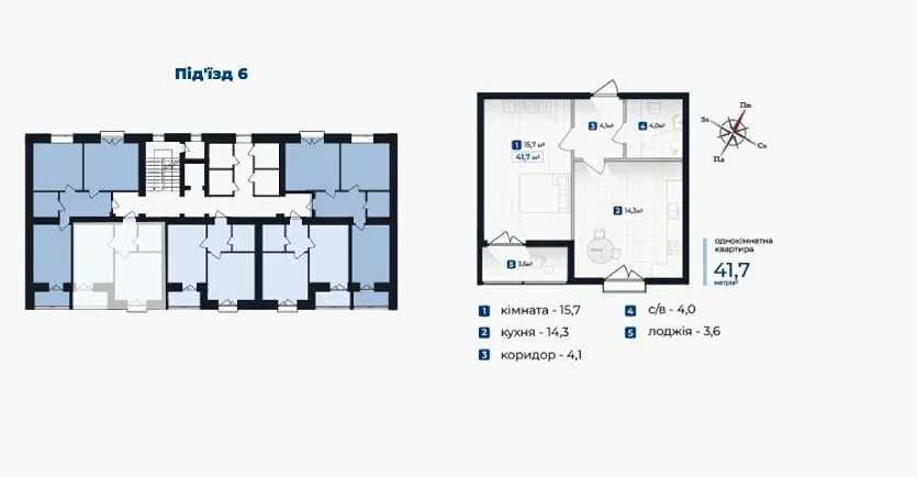 • Загальна площа 41.7 м2