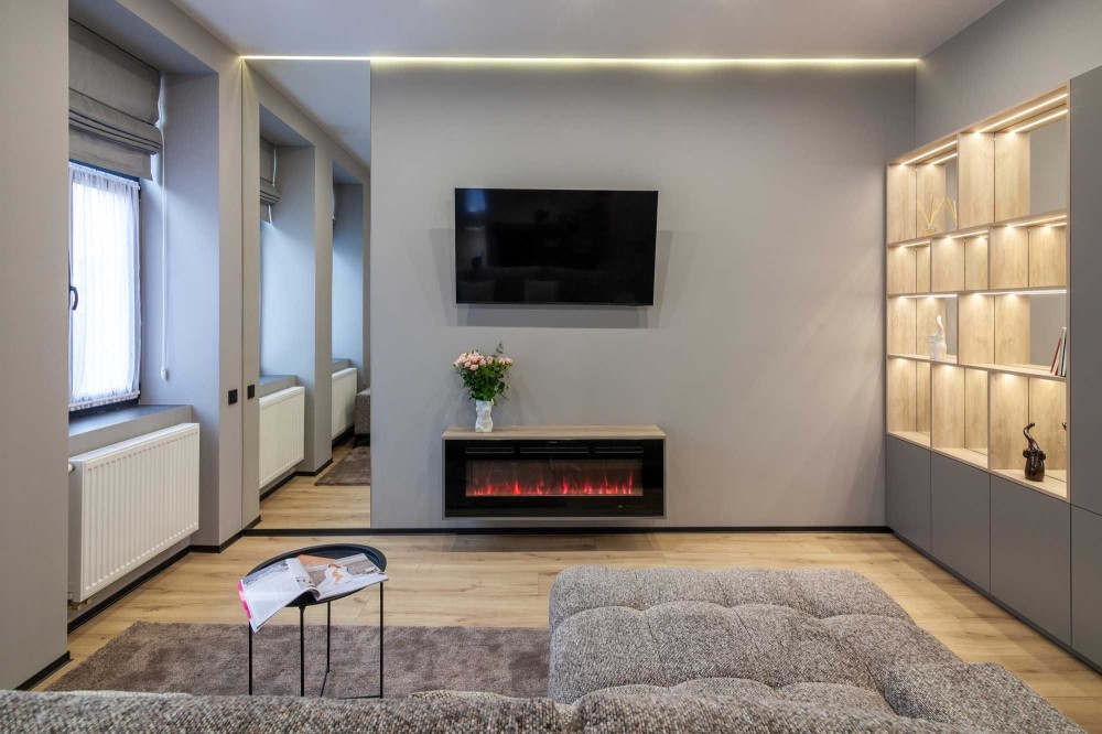 Вітальня — простора й світла, з м’яким розкладним диваном, на якому можуть комфортно розміститись ще двоє гостей. Є телевізор та шафа для зберігання речей.