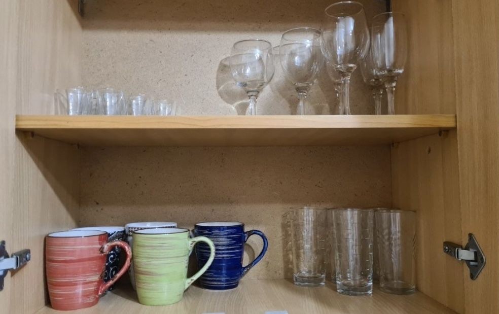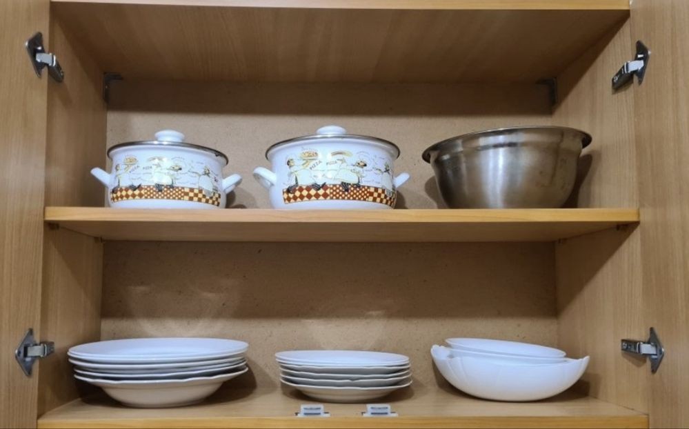 Микроволновка, чайник, необходимый посуд, газовая плита, холодильник, стиралка.