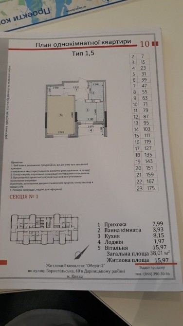Продам! Владелец. Переуступка прав. Однушка, ЖК "Обериг 2" 1 й дом сдан в эксплуатацию. Дом на стадии передачи комунальному хоз-ву. ул. Бориспольская 32/14 , класса - Комфорт. 38.01м. / 22 этаж/ окна во двор/ не угловая. Стандартная планировка. Современный 23 этажный дом из трёх секций. 5 минут езды до метро Бориспольская и Красный хутор, 15 мин. метро Левобережная, Выдубичи. Автобусная остановка у дома. В пешей доступности парк Партизанской славы , рядом школы, детский сад, стадион, церковь и так далее...полная инфраструктура. Застройщик: Киевгорстрой.