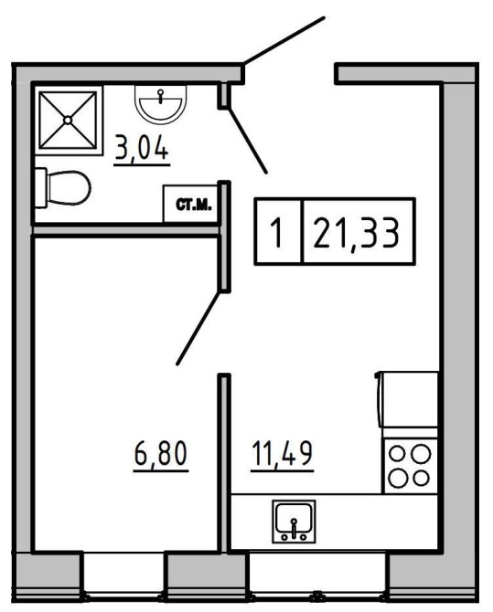 • Загальна площа 21 м2