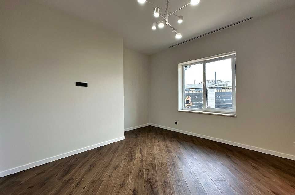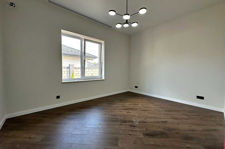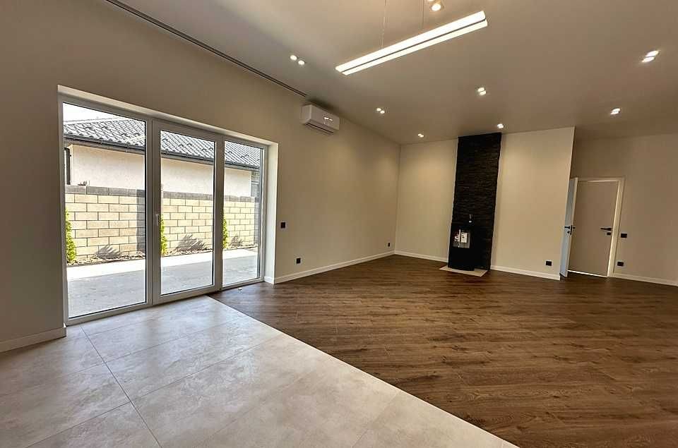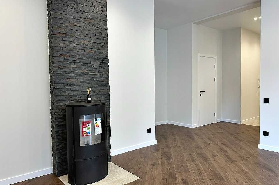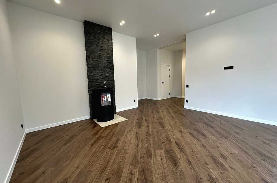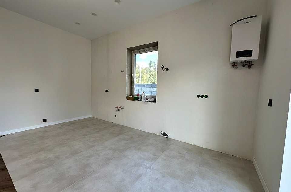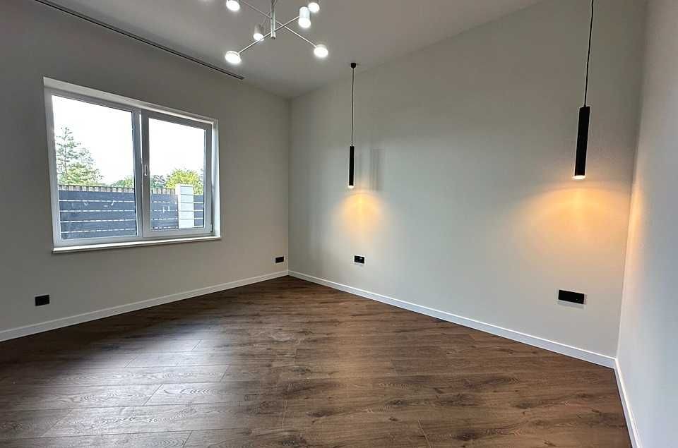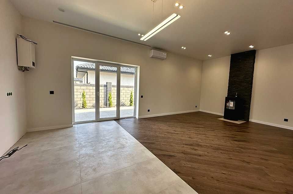 кухні-вітальні облаштований димоходний камін. У будинку зроблено сучасний ремонт у світлих тонах: фарбовані стіни, на підлозі – керамограніт та ламінат. Вже встановлені світильники та люстри з різними сценаріями освітлення. Розведено водяну теплу підлогу від газового та електрокотла по всьому будинку.