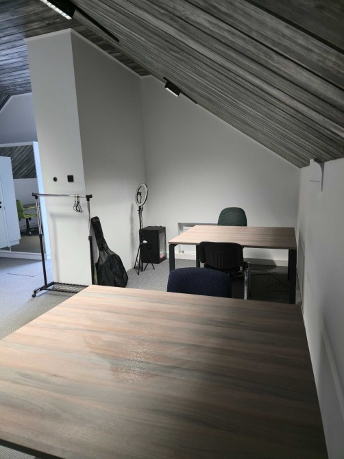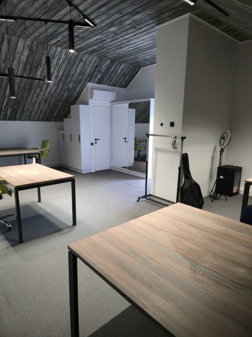 • Просторе та світле приміщення з великими вікнами та високою стелєю
