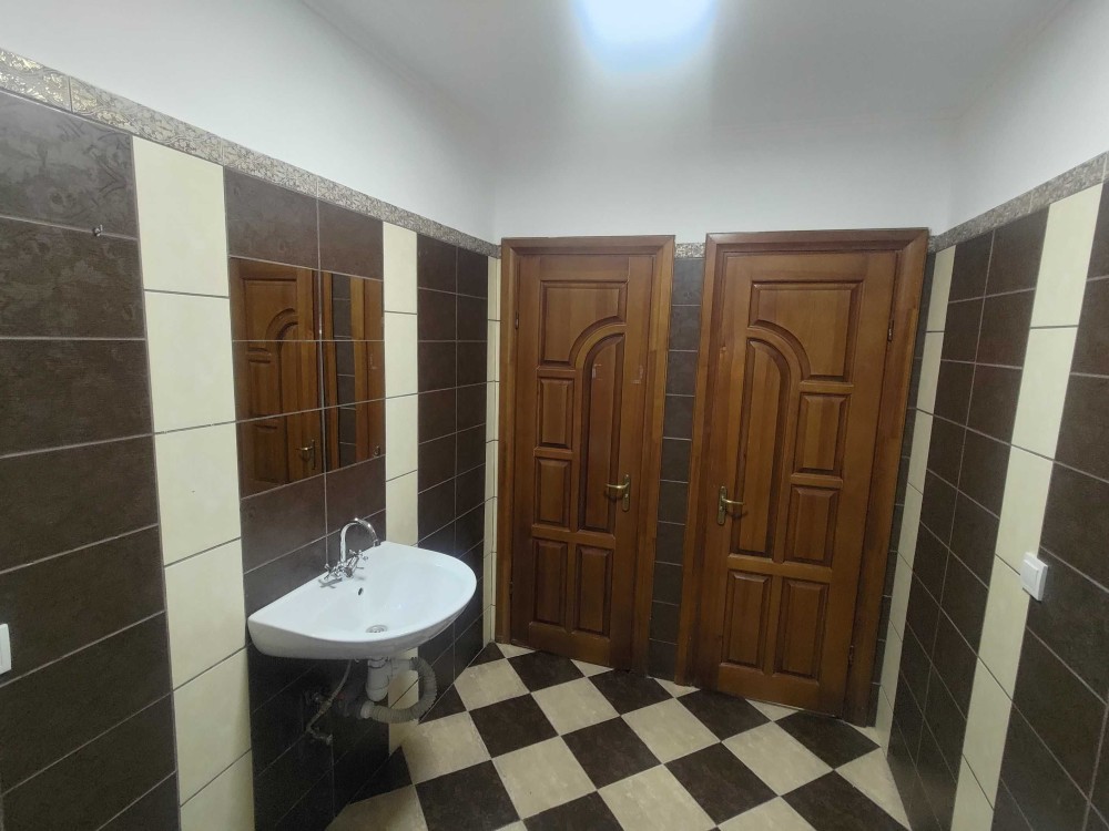 Площа 100м. Перший поверх. Коридор,санвузол і дві кімнати.