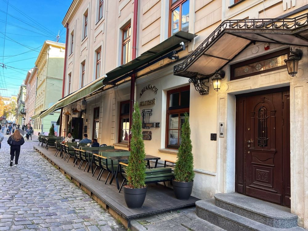 Розташований в 5 хвилинах від Ратуші та в 2 хвилинах від транспортних артерій на пл. Соборній або пл. Галицької.