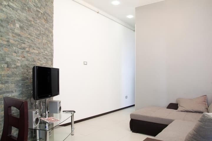Самостійне опалення з підігрівом підлоги. Квартира складається з 2 ізольованих спалень, вітальні-кухні (19 кв. м), ванної кімнати та балкона. Можна розмістити до 6 осіб (2 +2 +2).