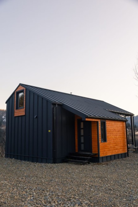 В будинку є дві окремі кімнати,санвузол та простора кухня-вітальня.