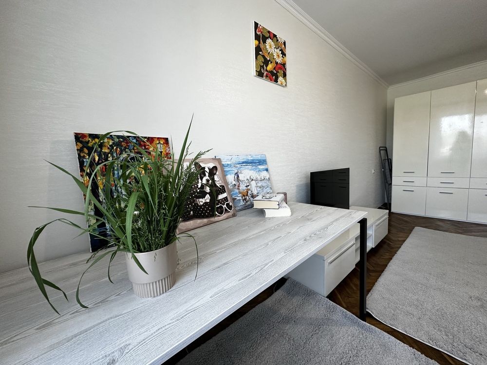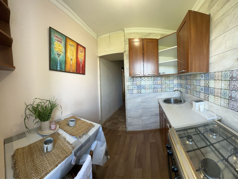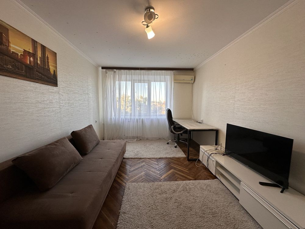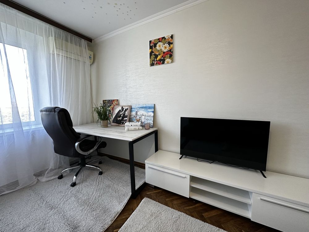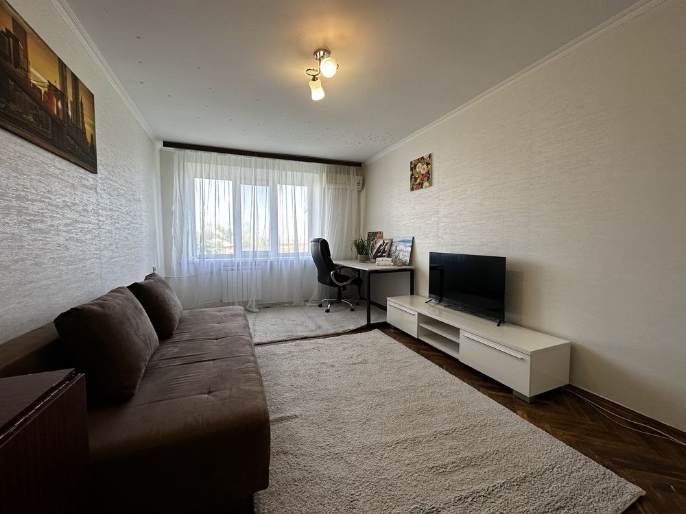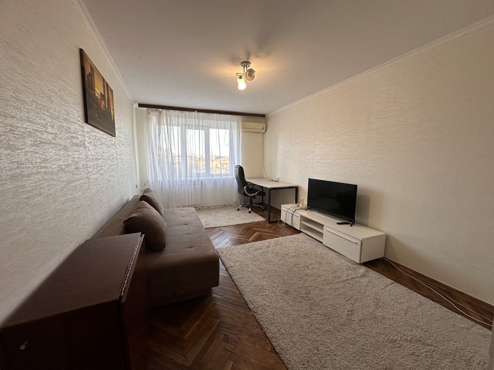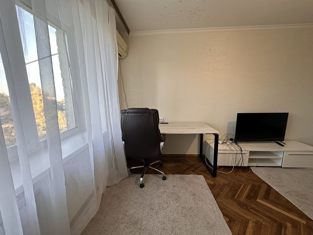 Оренда однокімнатної квартири загальною площею 30м2, простора кімната 17м2, кухня 5,5 м2, місткий коридор. Розташована на 7 поверсі в 9 поверховому цегляному будинку, не кутова. Новий косметичний ремонт - кв. забезпечена всіма необхідними речами для комфортного життя: кондиціонер, розкішний робочий стіл зі зручним стільцем, новий телевізор та зручний диван, шафа для зберігання речей, додатковий стіл, кухонний гарнітур, обідній стіл та стільці, холодильник, газова плита, електро та звичайний чайник, Бойлер, пральна машинка, пилотяг, сушильня для білизни, шафа в коридорі.