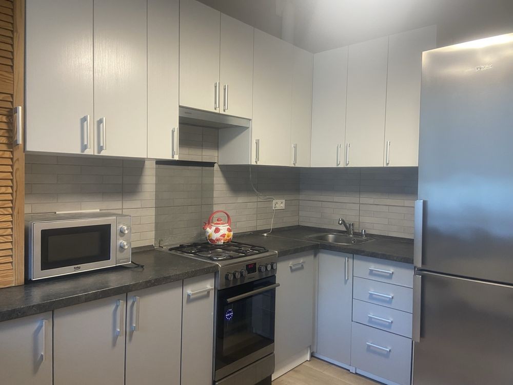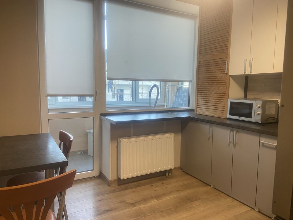 Оренда стильної 1 к кв з кухнею студією в новому будинку ЖК "Файна Таун" в Шевченківському районі, вул. Салютна, 2 Квартира 43 м2 , розташована на четвертому поверсі та складається з передпокою, спальні, великої кухні -студії та санвузла. Вікна квартири виходять в двір. Облаштована всіма необхідними меблями з екологічно чистої деревини та оснащена побутовою технікою: телевізор Samsung Smart 43, кондиціонери в кухні та кімнаті, плита індукційна, вбудований холодильник, духова шафа з функцією мікрохвильової печі, пральна машина з сушаркою. В кухні та ванній кімнаті тепла підлога, високошвидкісний інтернет. ЖК "Файна Таун" це: закрита територія з входом по картці, цілодобова охорона, відеоспостереження, паркінг, підземні контейнери для сміття, зарядні станції для електромобілів та лавки з інтегрованими батареями для підзарядки девайсів, розумне освітлення, яке підлаштовується під час доби та ще багато чого для того, щоб жити з комфортом й ні в чому себе не обмежувати) розповім при перегляді. Зручне транспортне сполучення та розвинута інфраструктура: магазини,спортивні та пішохідні зони ,зона барбекю, ресторани та кафе. Квартира, в якій поєднані комфорт та затишок, шукає своїх порядних орендарів молоду пару або одну людину без дітей та тварин. Перша оренда, квартира вільна.