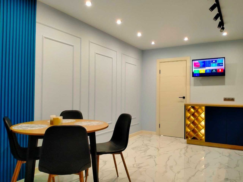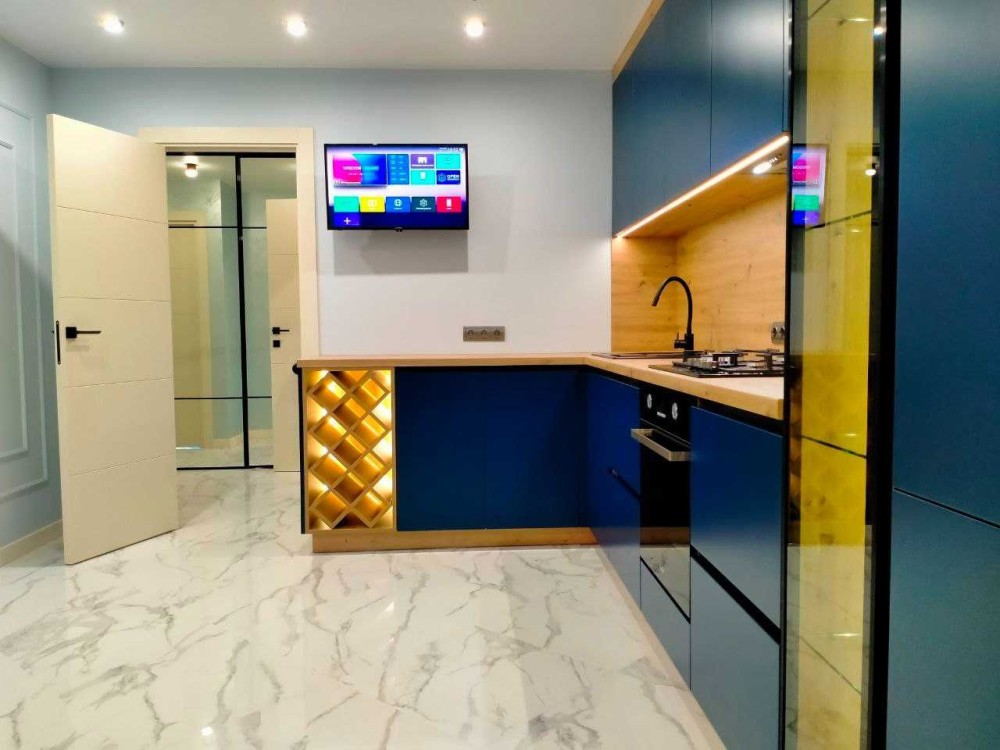 Повністю мебльована, оснащена сучасною технікою: smart TV, кондиціонер, Wi-Fi, вбудована кухня. Встановлені лічильники на воду, газ та електроенергію.