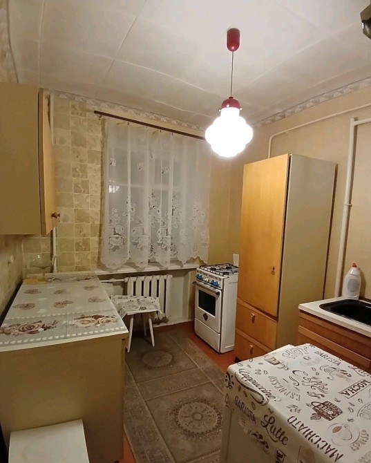 В квартирі є меблі та техніка окрім пральної машини.