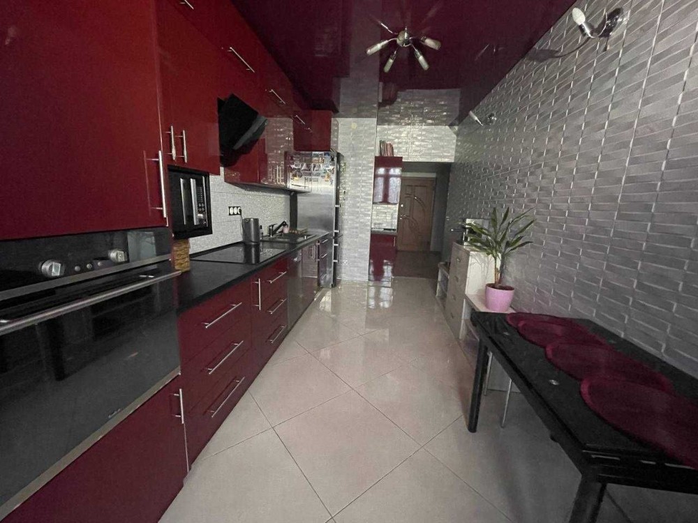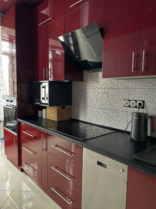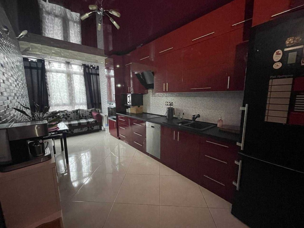 Великі шафи-купе, два розкладні дивани, вся побутова: посудомийна машина, варильна поверхня, духовка, мікрохвильова, електрочайник, пральна машина, холодильник.