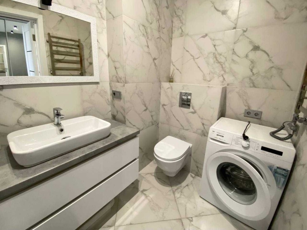 Всі необхідні меблі та побутова техніка (в тому числі посудомийна машина та кондиціонер). Є посуд та постіль. Все необхідне доставлять на вимогу орендаря. Спальне місце: двоспальне ліжко. Є робоче місце. Індивідуальне опалення. Ванна. Підігрів підлоги.Чудовий вигляд з вікна. Просторий балкон. Затишний район. Розвинута інфраструктура. Зручна транспортна розв'язка. Поруч паркова зона.