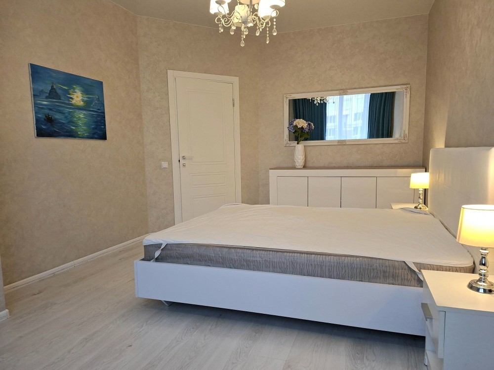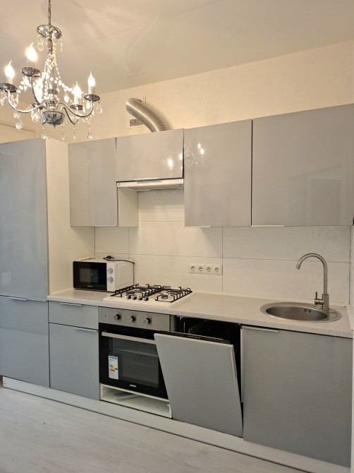 Квартира з сучасним ремонтом, укомплектована всіює необхідною технікою та меблями для комфортного проживання, а саме : Вбудована кухня з витяжкою газова варочна поверхня, духова шафа, посудомийна машина, холодильник, мікрохвильова піч ,стіл та стільці, розкладний диван, двоспальне ліжко, телевізор, кондиціонер, прикроватні тумби, комод, шафа-купе, пральна машина.,