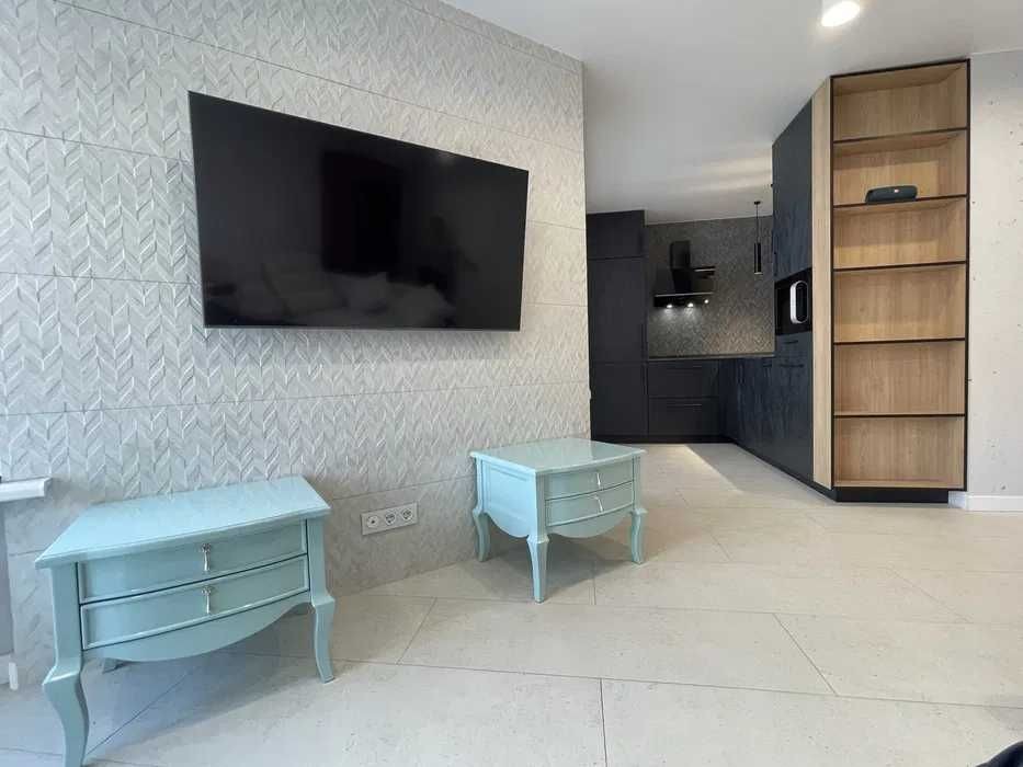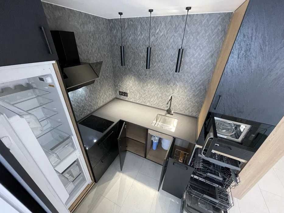 8 поверх, будинок біля алеї з фонтаном. Дизайнерський ремонт, повністю укомплектована: газовий котел, кондиціонер, ТВ 55″, пральна та посудомийна машини, преміальні меблі.