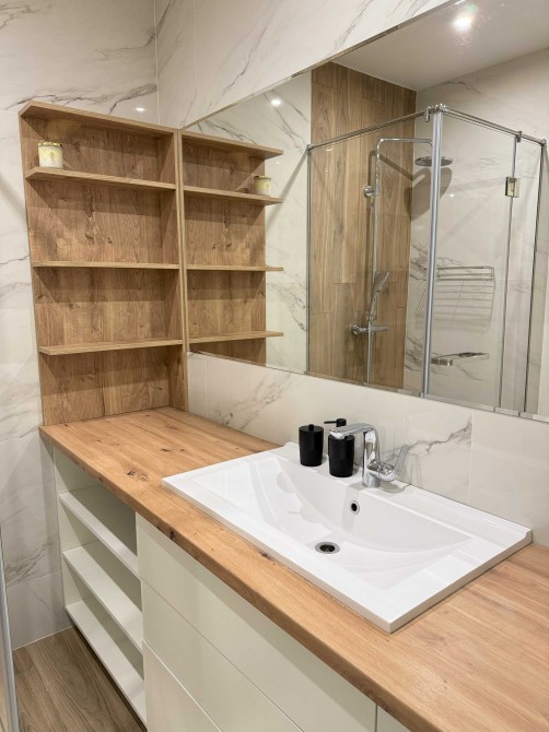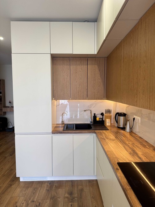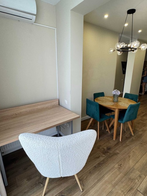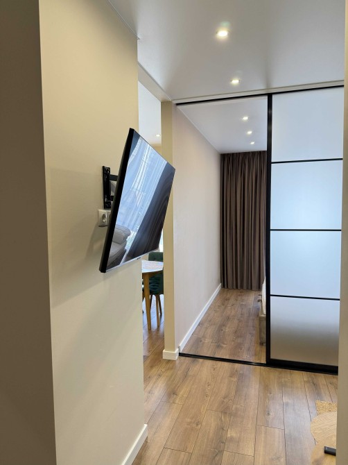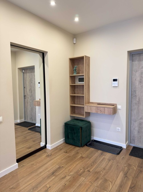 Затишна, світла квартира. Кухня-студія з необхідною технікою(посудомийка, ТВ, кондиціонер, осмос), обідній столик та розкладний диван. Лоджія з робочим місцем. Спальна з двоспальним ліжком з підйомним механізмом та гардеробом. Санвузол з душем, пральною машиною з функцією сушки та великою кількістю місця для зберігання. У коридорі ще один гардероб та сигналізація ajax. У квартирі сучасний, продуманий ремонт, панорамні вікна, індивідуальне опалення, багато місця для зберігання.