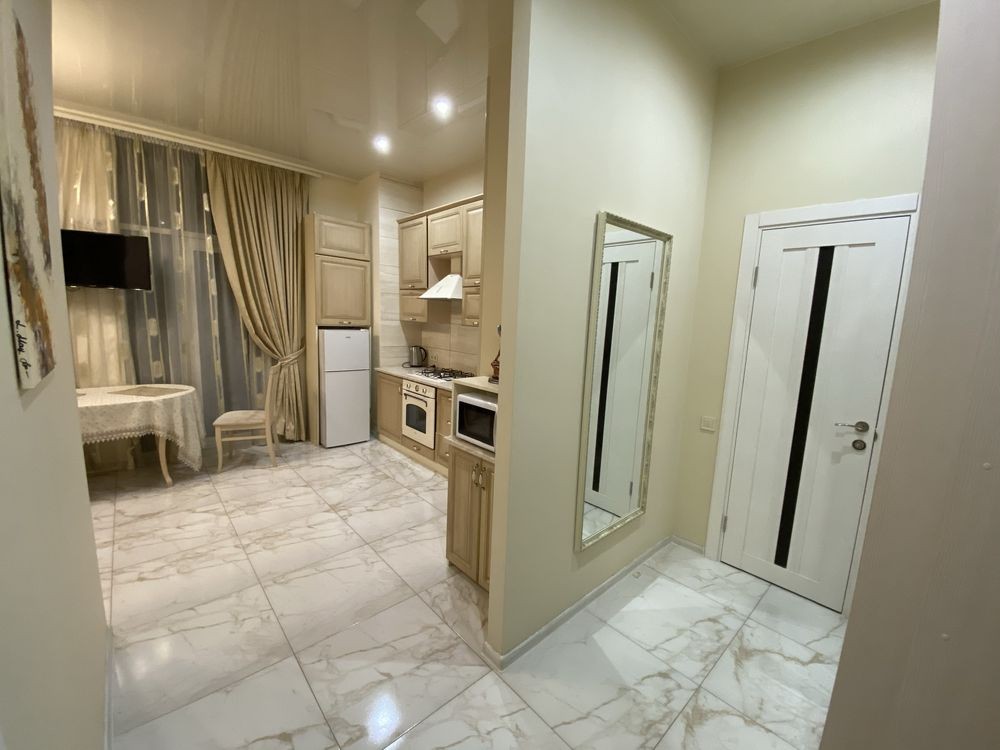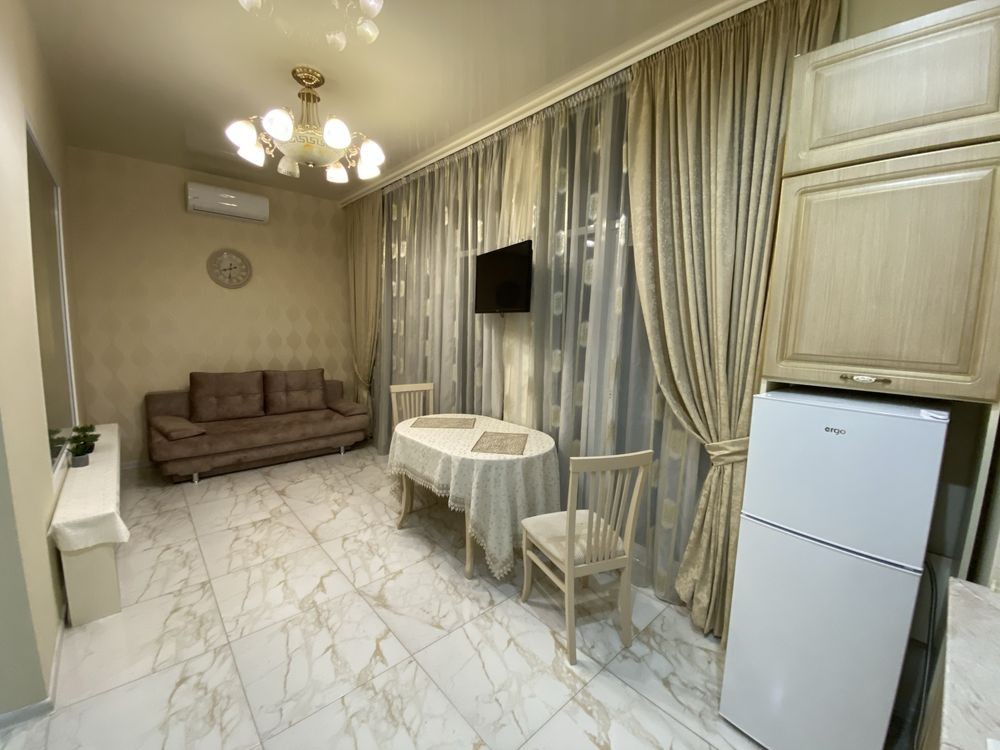 Кухня студія та невеличка спальня.