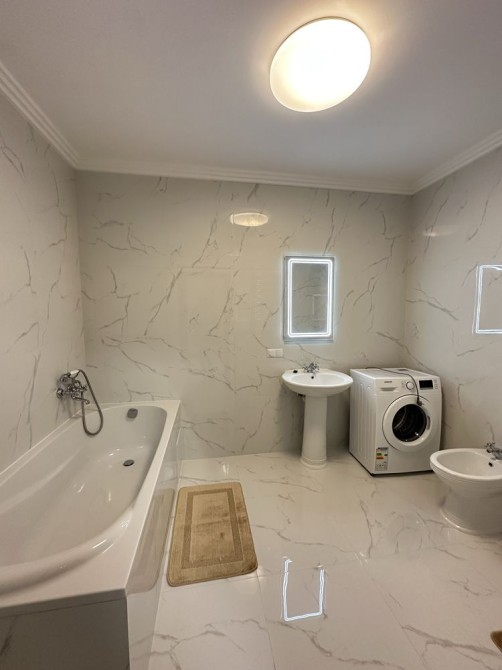 Санвузол з ванною, встановлена пральна машина.