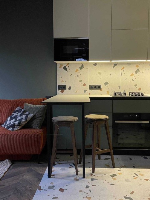 Квартира обладнана автономним опаленням, телевізором, кондиціонером, мікрохвильовою пічкою, холодильником, фільтром зворотнього осмосу, пралкою, посудомийкою та великою шафою.