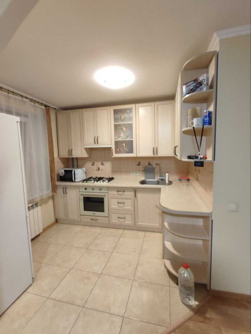 Квартира обладнана всіма необхідними меблями(двоспальне ліжко, велика шафа - купе) та технікою(газова плита, мікрохвильова піч, пральна машинка, холодильник, електрочайник, бойлер на гарячу воду).