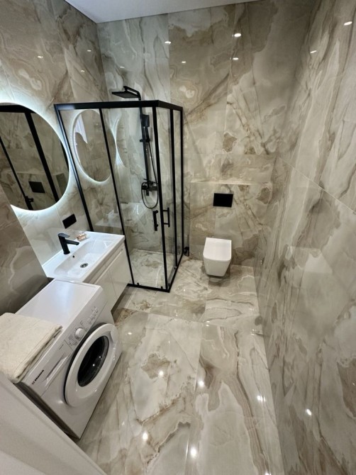 В квартирі встановлена тепла підлога, а також наявні всі необхідні меблі та техніка: посудомийна машина, мікрохвильова піч, духова шафа, телевізор, кондиціонер. Це перша здача квартири, тому все в чудовому стані.