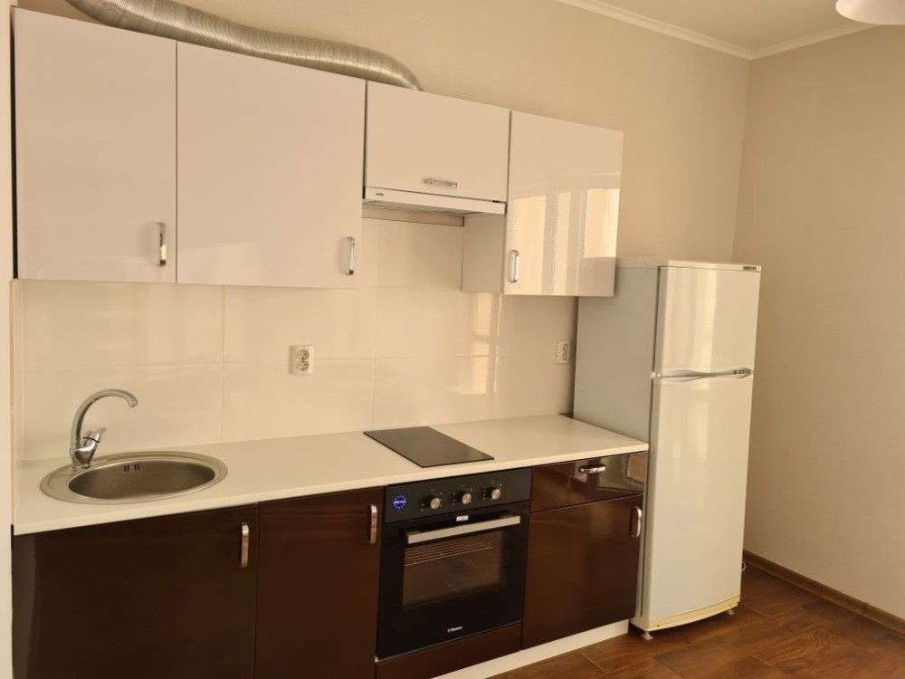 Чиста та охайна квартира, є все необхідне для комфортного проживання: ліжко з матрасом, шафа, вбудована кухня, холодильник, варильна поверхня, духовка, стіл, шафа-купе в прихожій. Лічильник на опалення. Панорамний вид.
