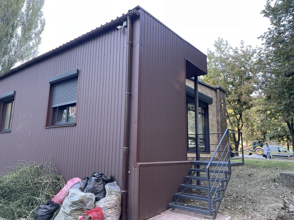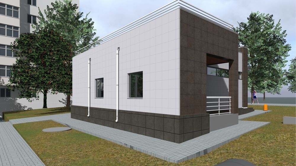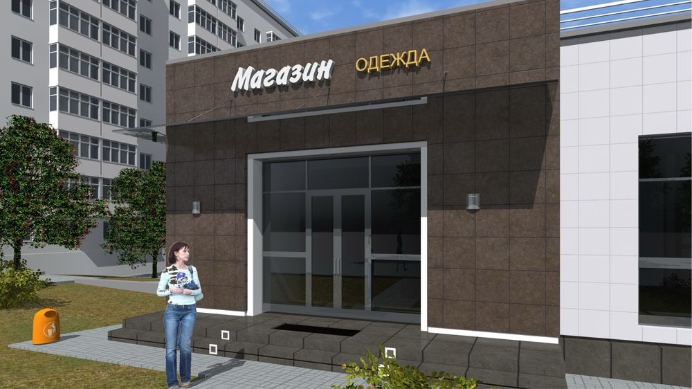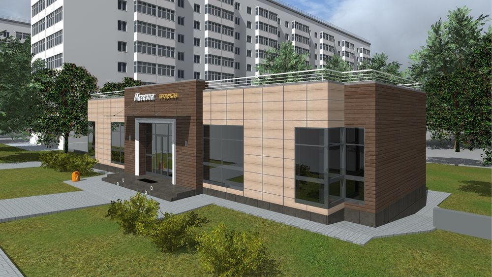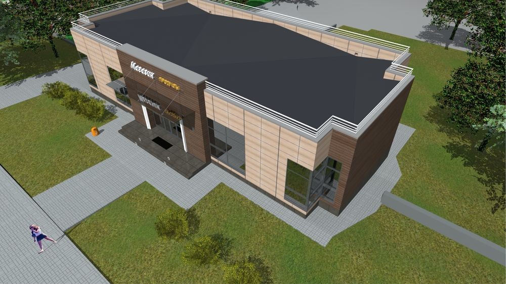 Будівлі добре проглядаються з вулиці, мають сучасний зовнішній вигляд, облицьовані кафельною плиткою, вигідно виділяються та привертають увагу покупців.