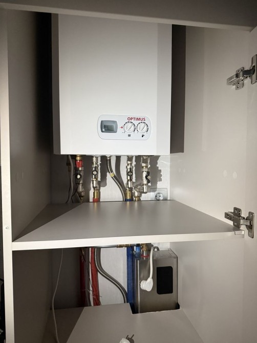Двухконтурний газовий котел. Додатково є електро бойлер.