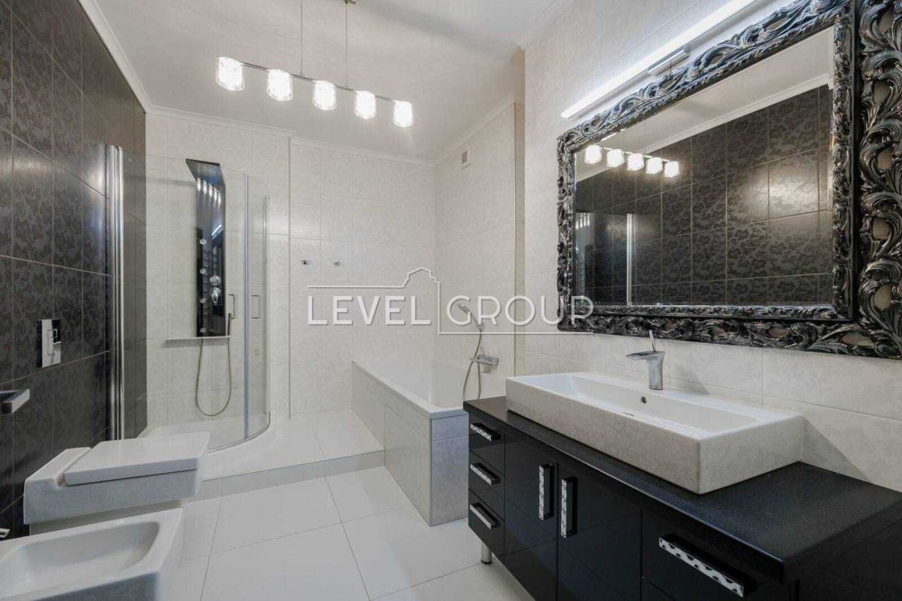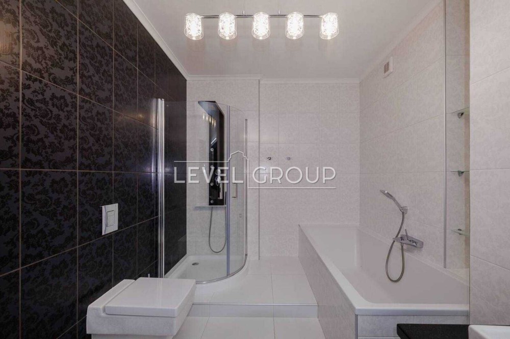 Санвузол — суміжний, з сучасною сантехнікою, облицьований плиткою.
