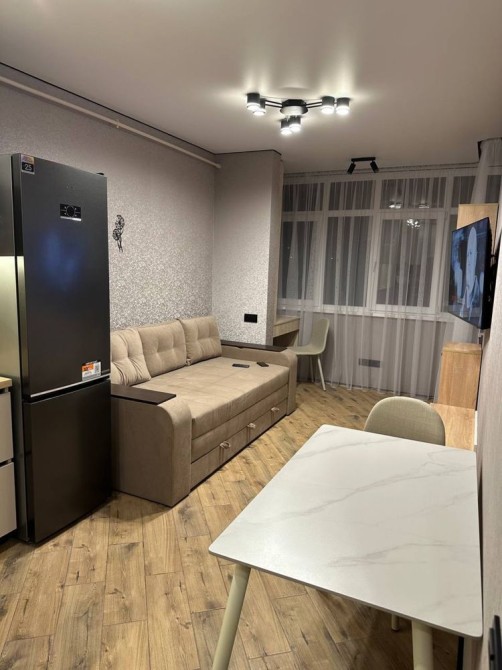 Квартира 39 квадратів, тільки після ремонту, вся техніка і меблі нові, (кухня, шафи та робочий стіл зроблені під замовлення). Кухня-вітальня 19 квадратів, є телевізор та кондиціонер. Тепла підлога всюди, окрім спальні і тієї частини де стоїть диван. Проведений інтернет.