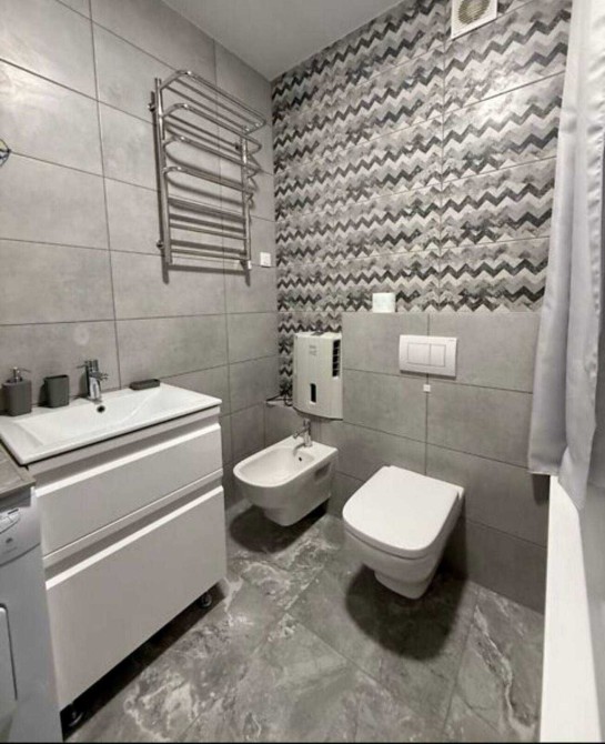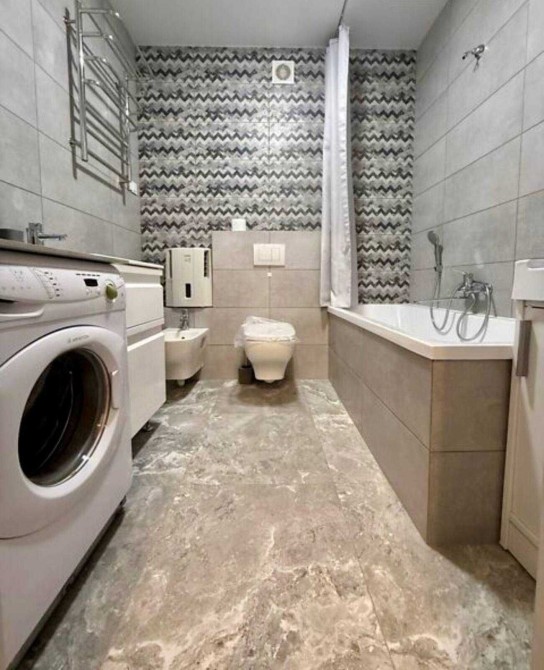Сучасна ванна кімната: ванна з душем, умивальник, біде, технічний умивальник, пральна машина;