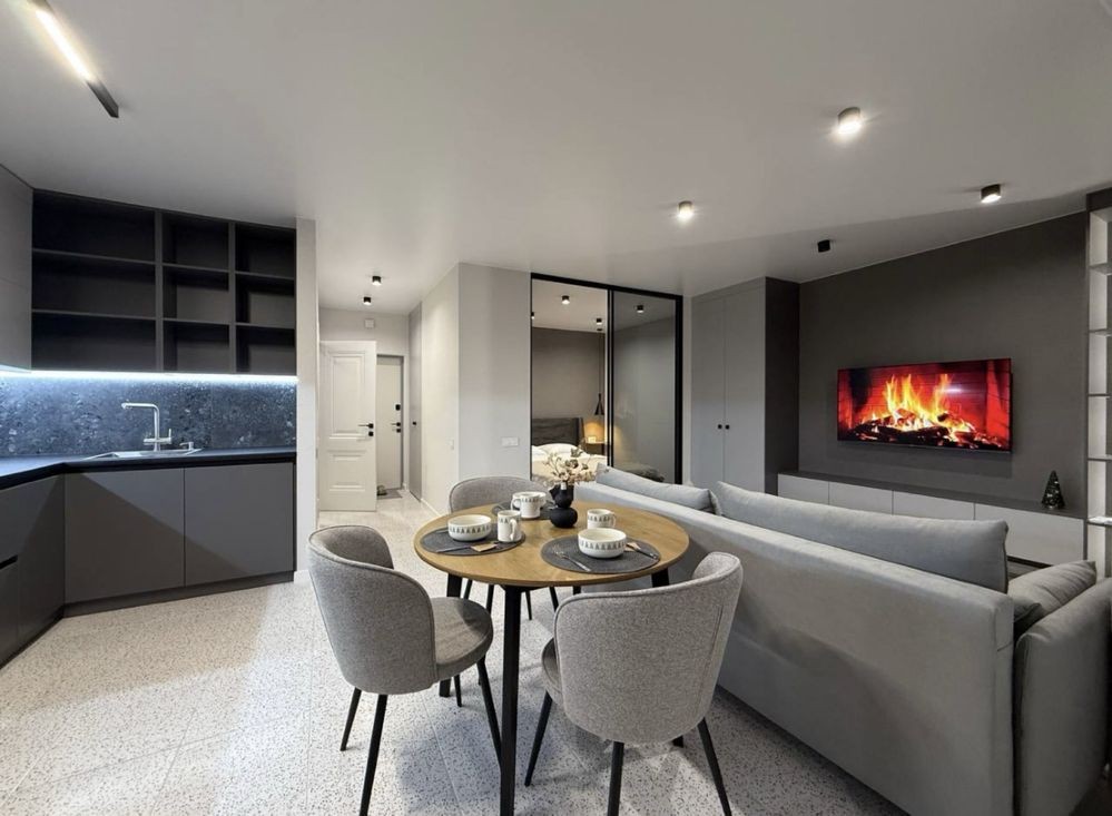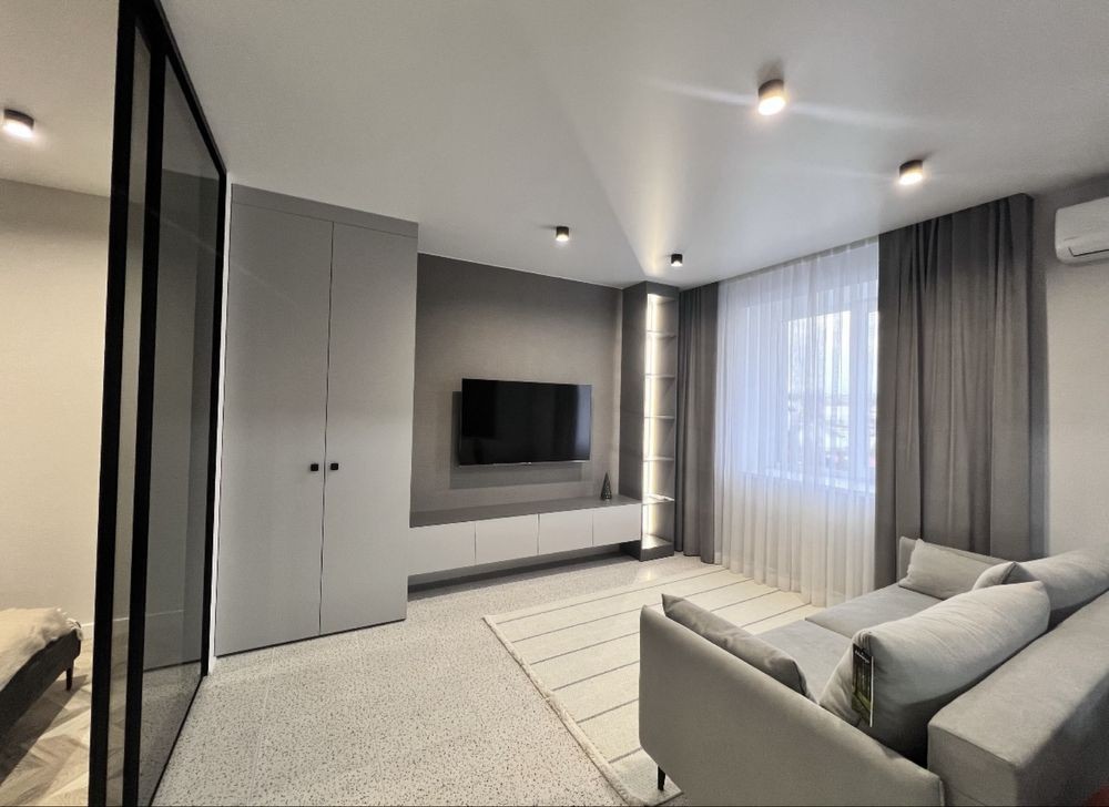 Оренда стильної та комфортної 1 кімнатної квартири на Виставці. Новобудова. Індивідуальне опалення. Тепла підлога по всій квартирі. Дизайнерський євроремонт, меблі та техніка: холодильник, пральна машина, посудомийна машина, духова шафа, плазмовий телевізор, кондиціонер. 2 спальних місця - диван і 2спальне ліжко.