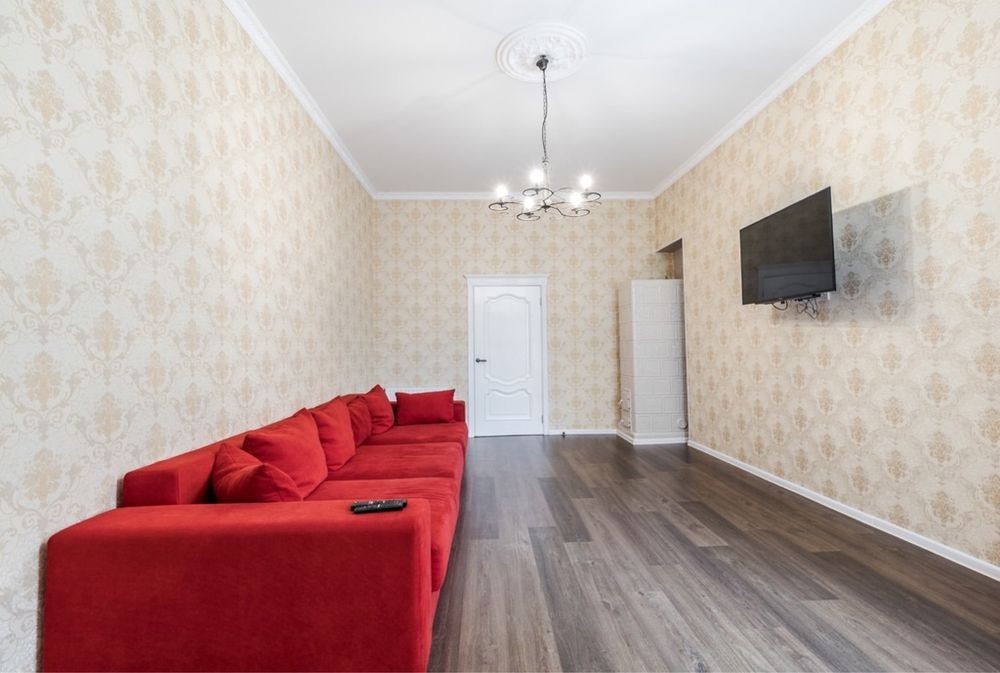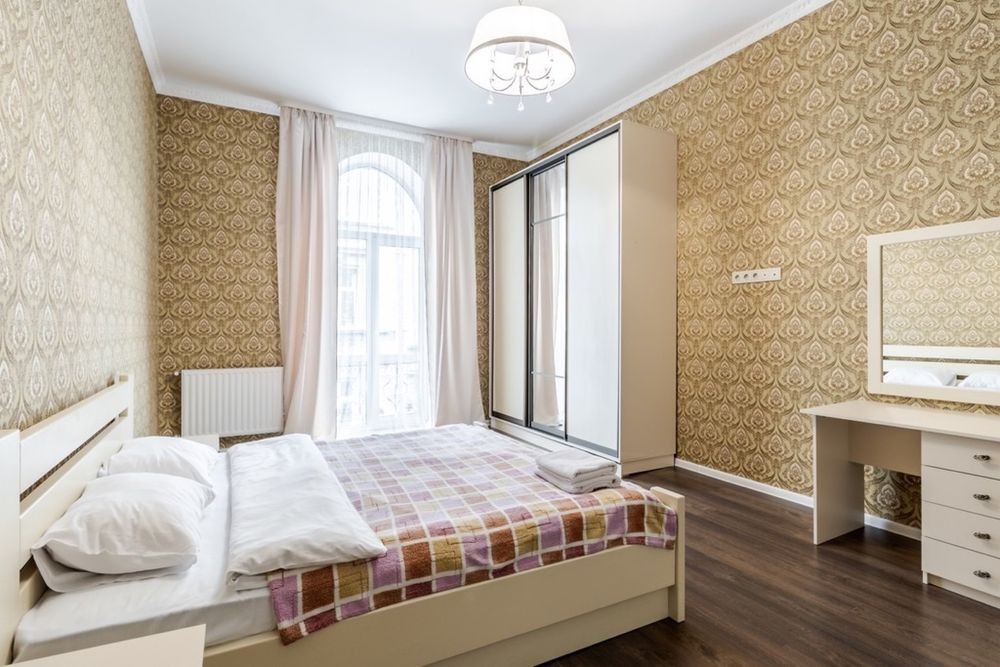 Исторический центр Киева, бул. Л. Украинки 9. Пешком до Крещатика 20 минут, столько же и до Печерской Лавры. Метро Печерская 350м. Хорошая 4-комнатная квартира после косметического ремонта. Чистота и уют. 3 отдельные спальни с 2-спальными кроватями, гостиная с угловым раскладным диваном, дополнительно есть раскладная односпальная кровать. Новые постельные принадлежности, укомплектованная кухня, скоростной интернет и SMART TV 4K 50', кондиционеры во всех комнатах, электробойлер и центральная теплосеть, балкон застеклён, есть городской телефон. Зелёный двор с бюветом, спортивной и детской площадками, со шлагбаумом и парковкой. В доме салон красоты и аптека, рядом кафе и рестораны, супермаркеты, банки, остановки транспорта. Цена до конца войны договорная и зависит от количества дней аренды и числа заселившихся, возможна аренда на любой срок