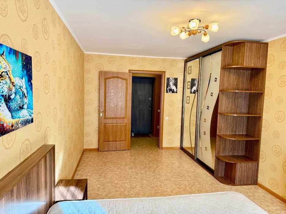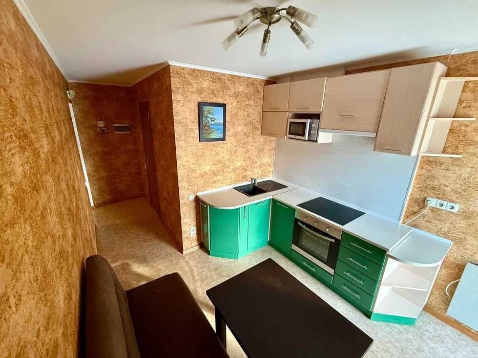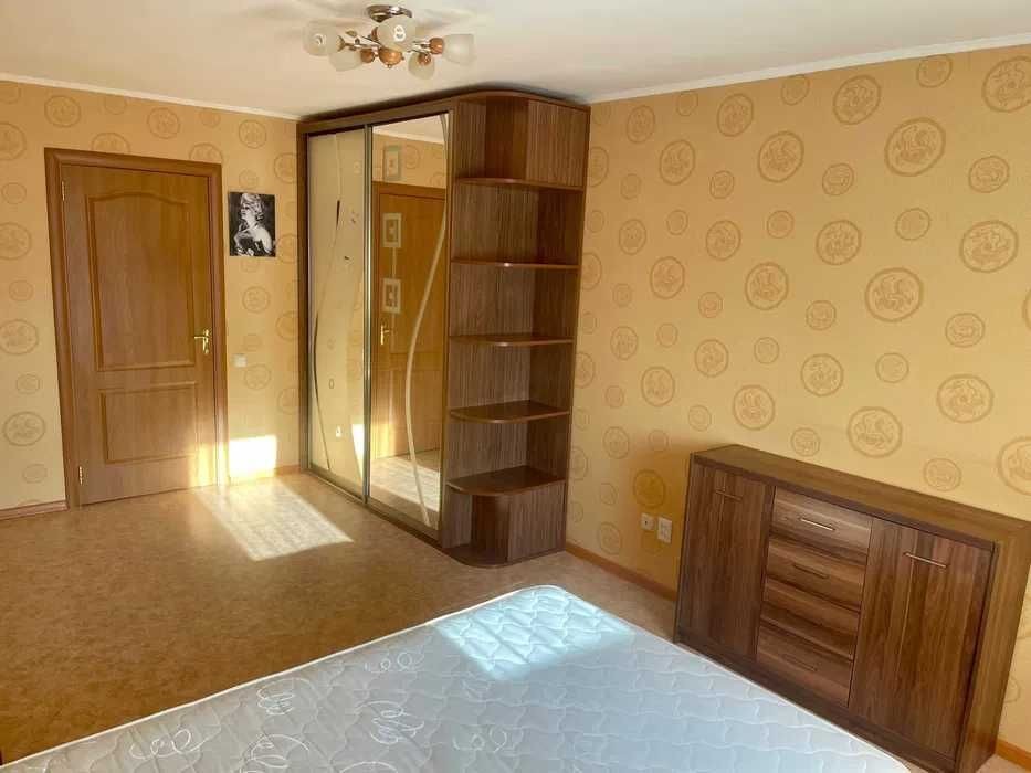 Пропонується в оренду світла простора 1 кімнатна квартира на Софіївській Борщагівці. в квартирі є все необхідне для комфортного життя. Кімната з великим 2х спальним ліжком, шафою, приліжковими тумбами. Кухня є вся техніка, меблі, холодильник, духова шафа, мікрохвильова піч, диван. Також вихід на лоджію на якій стоїть дуже комфортне крісло.