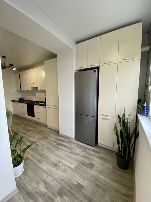 Велика кухня з лоджією, де облаштовано робоче місце — ідеально для віддаленої роботи або навчання