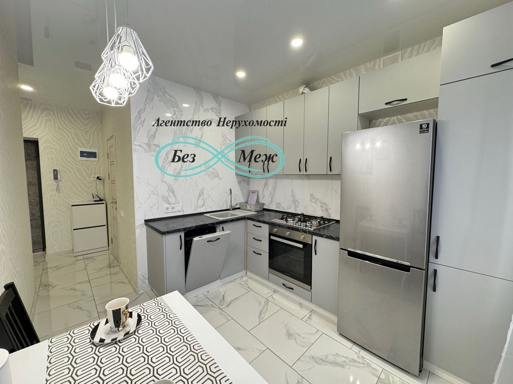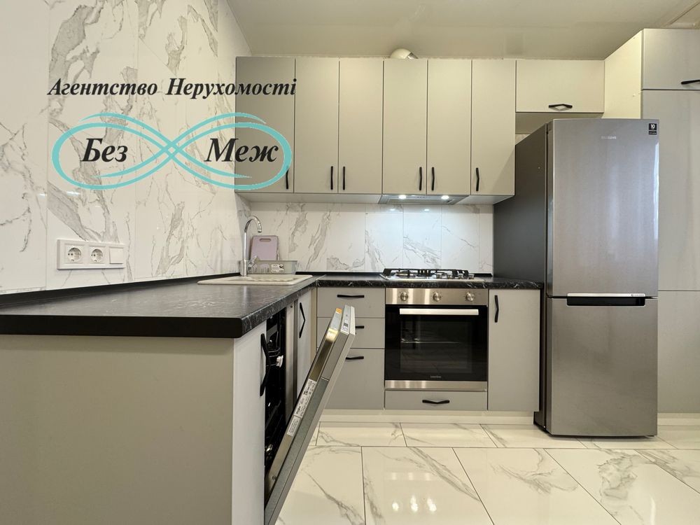 В квартирі є все необхідне для комфортного проживання: вбудована кухня, холодильник, пральна машинка, електрочайник, телевізор, кондиціонер, газова плита,духовка, двоспальне ліжко, шафа в коридорі, комод, прикроватні тумбочки,стіл зі стільцями, посудомийна машина,домофон.