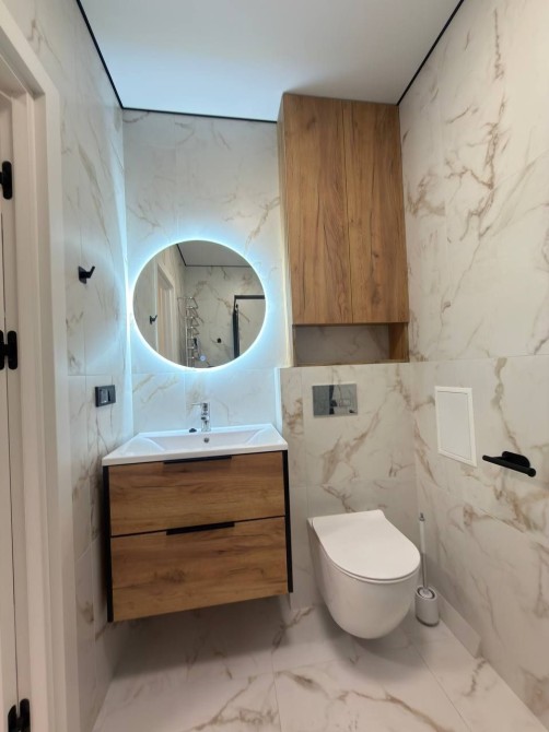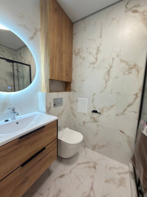 Планування дуже зручне та функціональне. У квартирі по всій площі встановлений підігрів підлоги, що забезпечує комфорт у будь-яку пору року. Також є кондиціонер та телевізори.