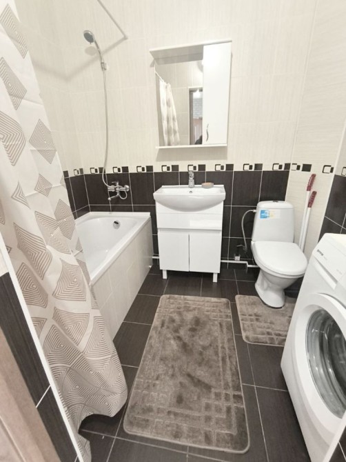 — у ванній кімнаті — ванна, пральна машина, сучасна сантехніка
