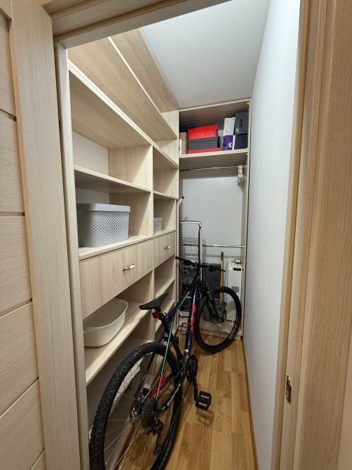 Двоспальне ліжко, гардеробна кімната,робоче місце.