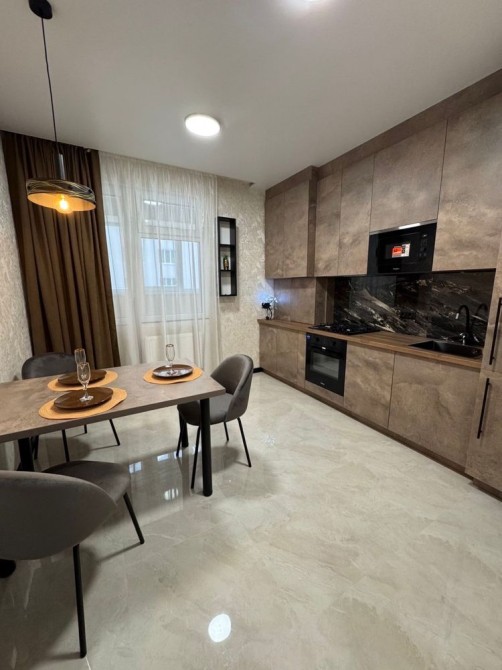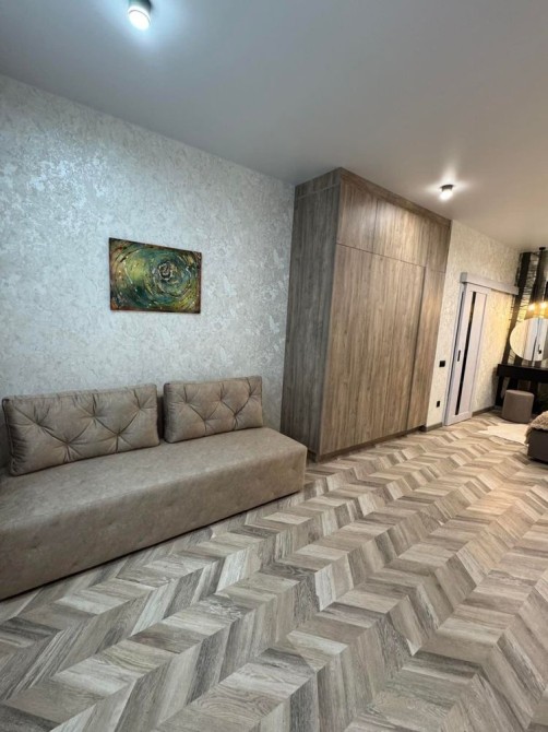 Квартира з сучасним якісним ремонтом та повністю обладнана сучасними меблями та побутовою технікою. Кімната простора( 22м2), зонована на спальну зону( двоспальне ліжко) та зону відпочинку ( розкладний диван та TVзона).