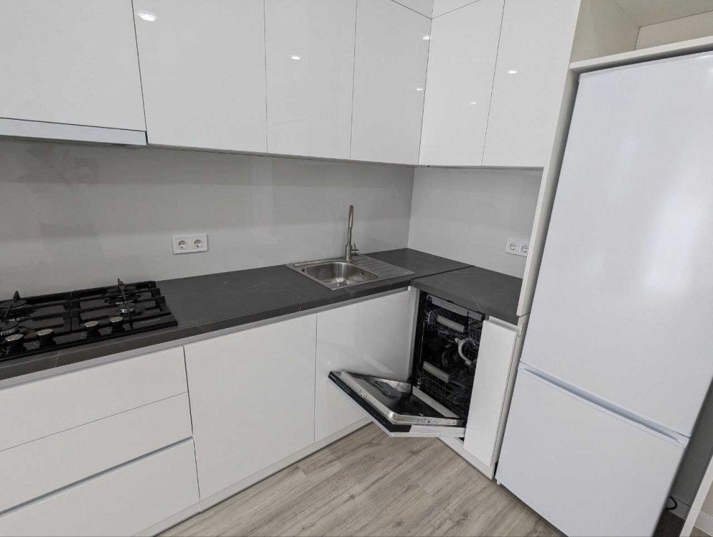 є побутова техніка: холодильник, тв, пральна машина, посудомийна машина, газова поверхня, духова шафа, кондиціонер.