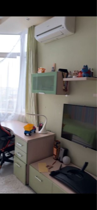 Планировка: отдельная спальня, детская/кабинет, кухня-гостиная, просторная прихожая, лоджия, санузел с ванной. Полностью меблирована, есть бытовая техника, кондиционеры в каждой комнате, вместительные системы хранения, телевизор.