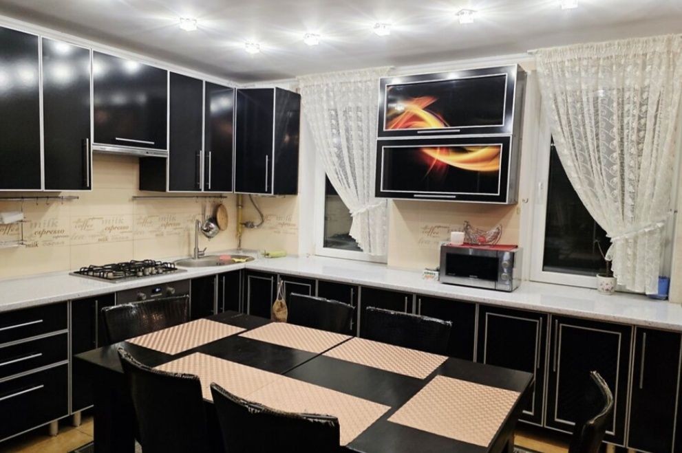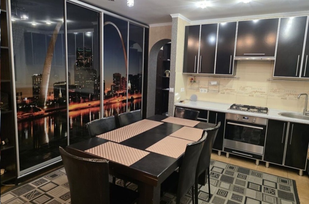 Простора квартира в котеджному містечку з величезною кухнею-вітальною та двома окремими спальнями. Вул . Отамана Сірка. Квартира дуже тепла, повністю укомплектована меблями та всією побутовою технікою.