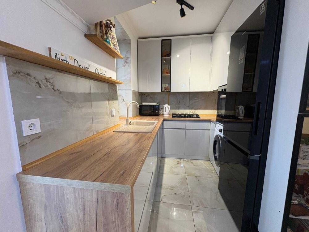 Оренда стильної 1 к кв з кухнею студією в новому будинку ЖК "Файна Таун" в Шевченківському районі, вул. Салютна, 2 Квартира 43 м2 , розташована на четвертому поверсі та складається з передпокою, спальні, великої кухні -студії та санвузла. Вікна квартири виходять в двір. Облаштована всіма необхідними меблями з екологічно чистої деревини та оснащена побутовою технікою: телевізор Samsung Smart 43, кондиціонери в кухні та кімнаті, плита індукційна, вбудований холодильник, духова шафа з функцією мікрохвильової печі, пральна машина з сушаркою. В кухні та ванній кімнаті тепла підлога, високошвидкісний інтернет. ЖК "Файна Таун" це: закрита територія з входом по картці, цілодобова охорона, відеоспостереження, паркінг, підземні контейнери для сміття, зарядні станції для електромобілів та лавки з інтегрованими батареями для підзарядки девайсів, розумне освітлення, яке підлаштовується під час доби та ще багато чого для того, щоб жити з комфортом й ні в чому себе не обмежувати) розповім при перегляді. Зручне транспортне сполучення та розвинута інфраструктура: магазини,спортивні та пішохідні зони ,зона барбекю, ресторани та кафе. Квартира, в якій поєднані комфорт та затишок, шукає своїх порядних орендарів молоду пару або одну людину без дітей та тварин. Перша оренда, квартира вільна.