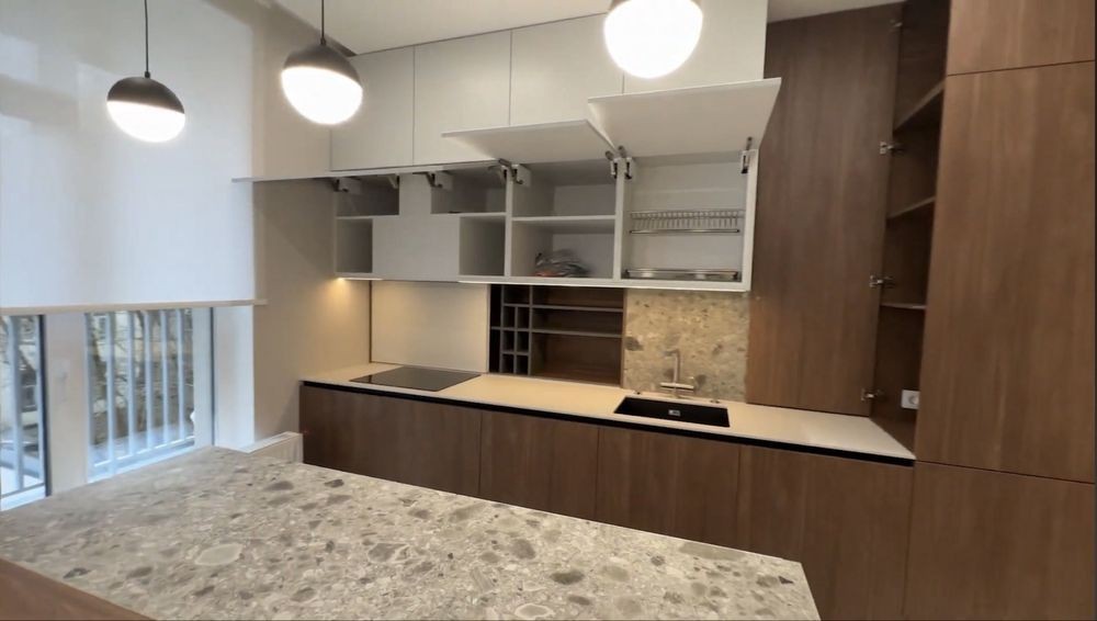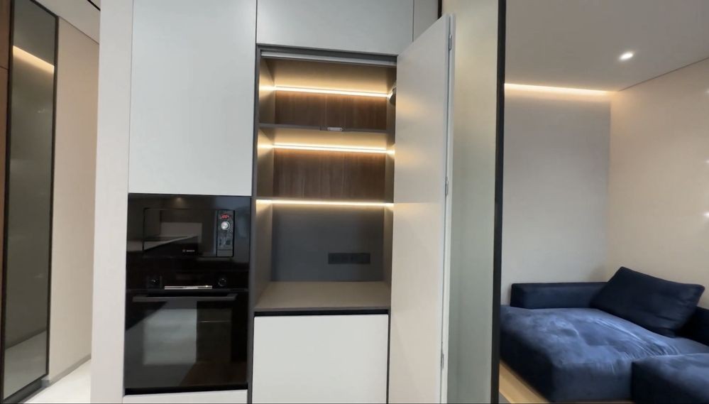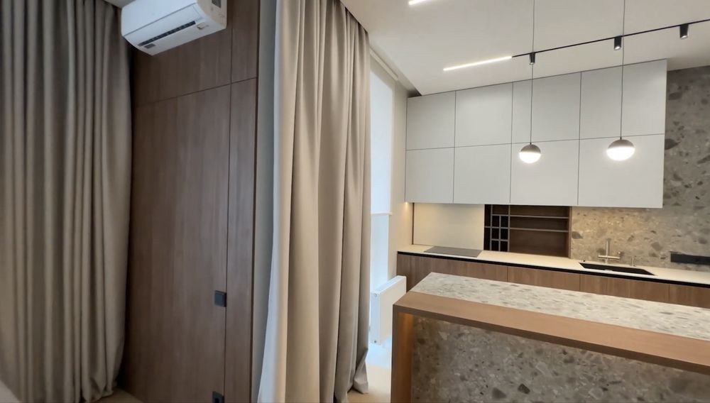 • Простора кухня-вітальня з сучасними меблями та вбудованою побутовою технікою