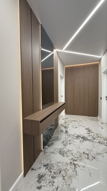 Дизайн інтер’єру виконано у сучасному стилі з використанням світлих тонів та якісних матеріалів.