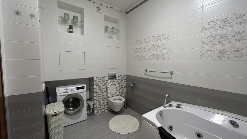 З переваг квартири - це просторі кімнати з високими стелями. Структура: простора ванна кімната з джакузі, хол-вітальня, кухня зі зручним плануванням та продуманою люмінацією, 2 окремі кімнати (ми використовували як спальню та дитячу кімнату), гардеробна кімната.