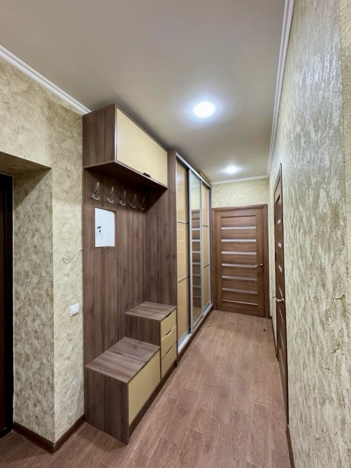 Квартира укомплектована меблями: велика кухня, шафа купе, прихожа, стіл на кухні