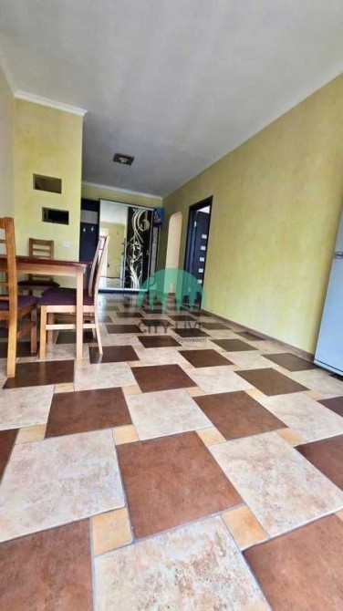 У помешканні зроблений ремонт. Загальний стиль інтер'єру поєднує практичність та спокійні тони. У багатьох зонах, зокрема в коридорі, кухні, їдальні та на балконі/лоджії, на підлозі викладена цікава плитка з коричневих та світло-бежевих квадратів, що створює контрастний шаховий візерунок. У вітальні постелено ламінат світлого дерев'яного відтінку. Стіни пофарбовані у світлі, переважно бежеві та світло-жовті кольори.